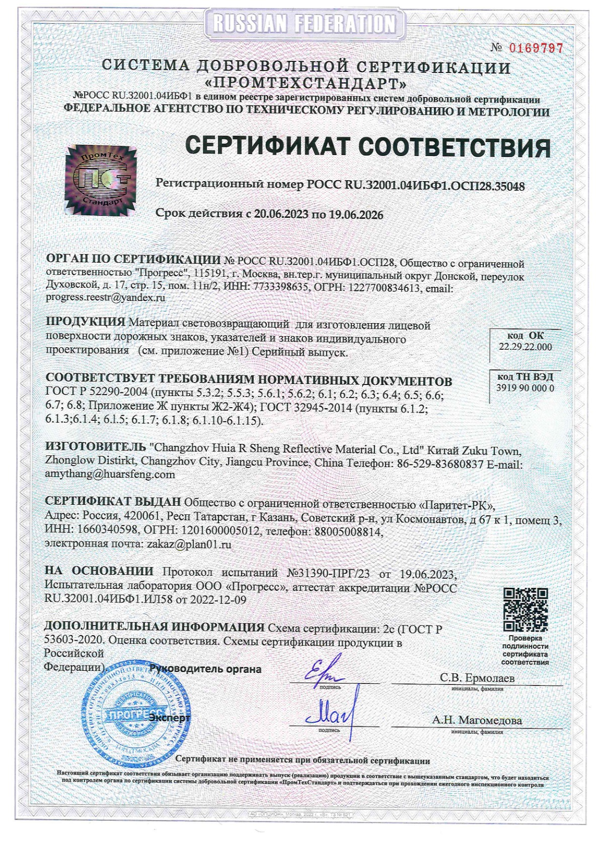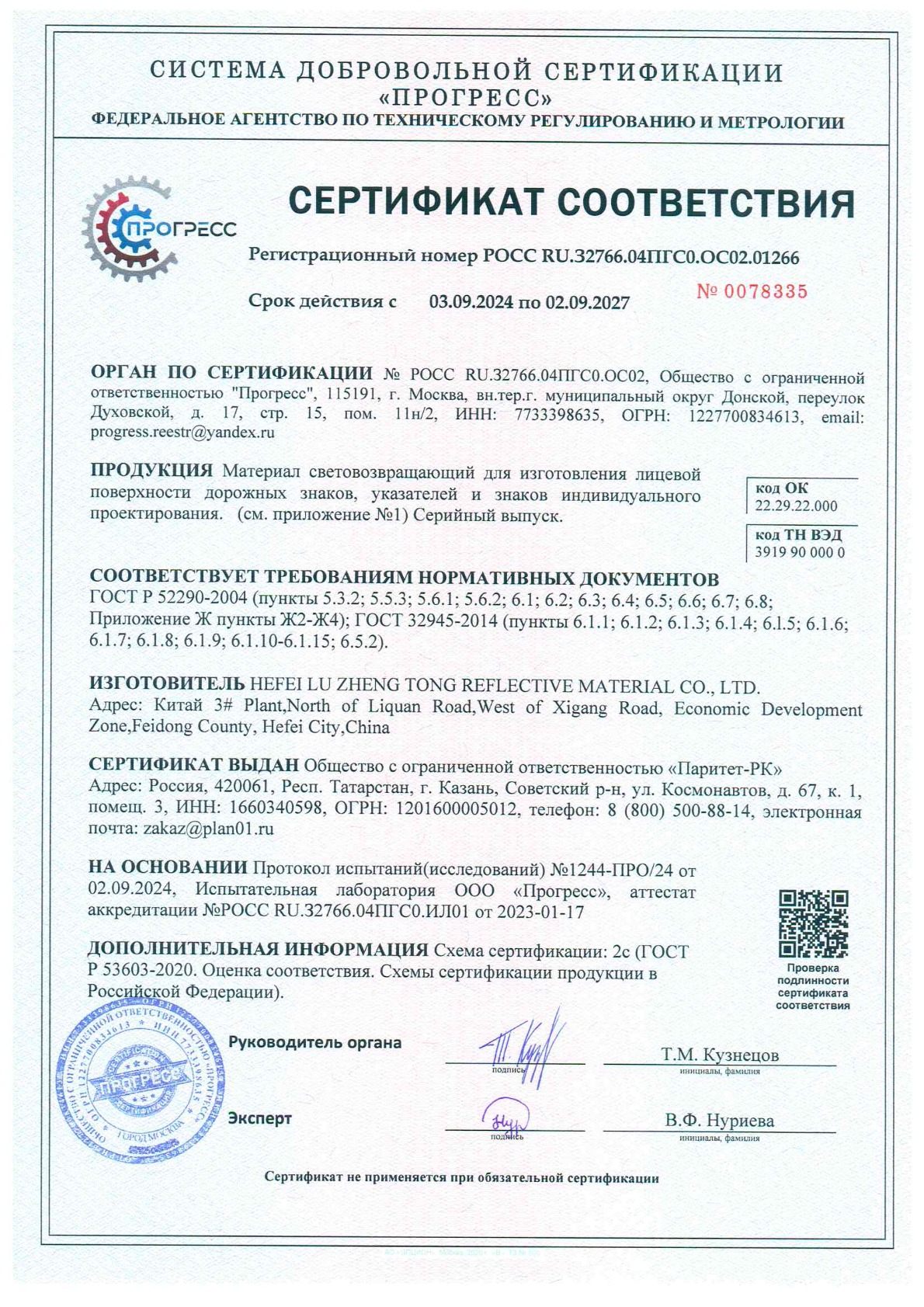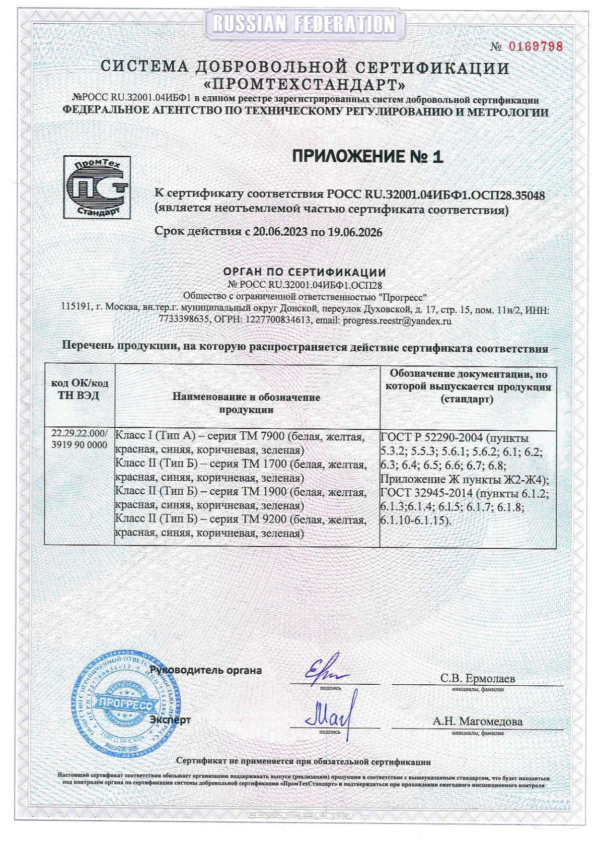 ООО "Паритет-РК" с 2012 года успешно работает на российском рынке фотолюминесцентной пленки, занимая лидирующие позиции. Мы предоставляем продукцию, соответствующую стандартам ГОСТ 12.4.026-2015 с изменением №1 от 01.10.2019 г. и ГОСТ 34428-2018, что подтверждается сертификатами безопасности.